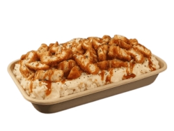Riz, sauce crousty, oignons frit, sauce au choix